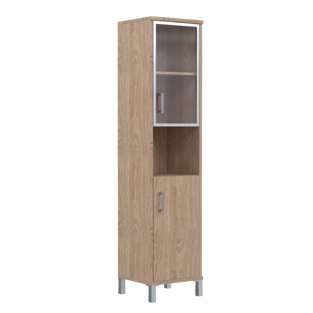 Шкаф-колонка высокая с малой стеклянной дверью в AL-рамке и глухой B 431.9(R) Дуб Девон 475х450х2054