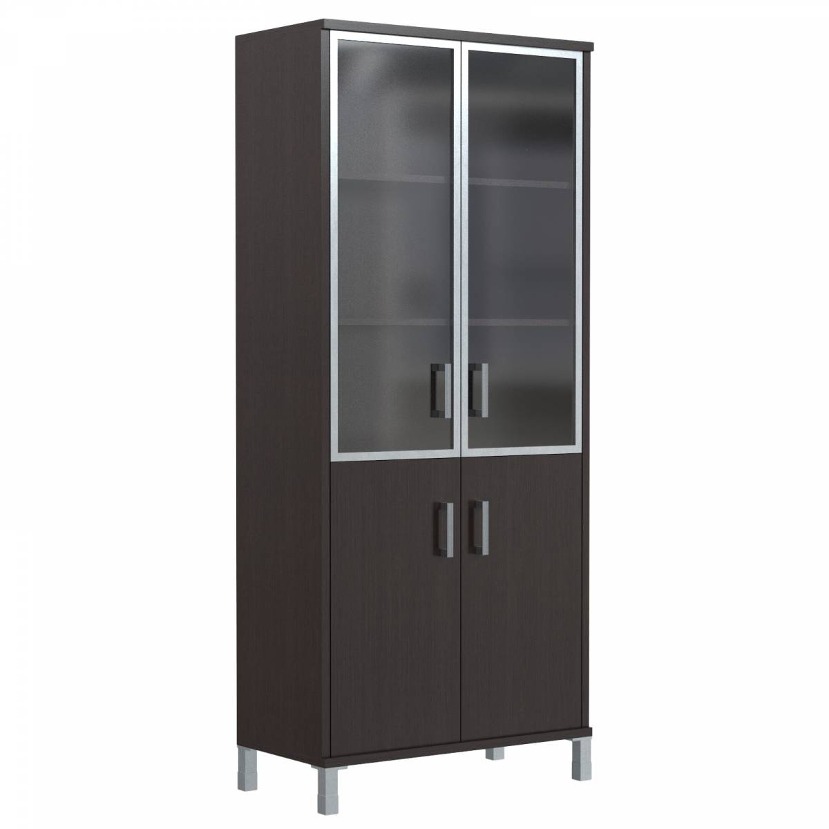 Шкаф высокий с малыми стеклянными дверьми в AL-рамке и глухими B 430.9 Венге Магия 900х450х2054