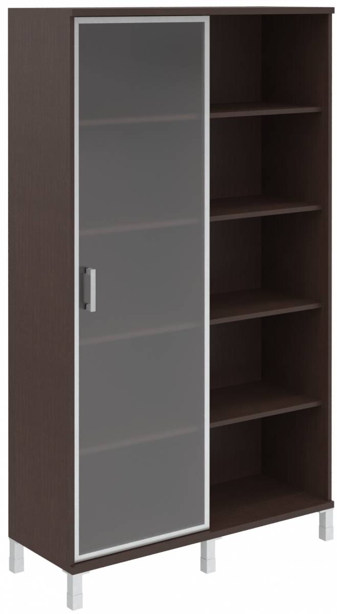 Шкаф-колонка высокая с малой стеклянной дверью в AL-рамке и глухой B 431.9(L) Венге Магия 475х450х2054