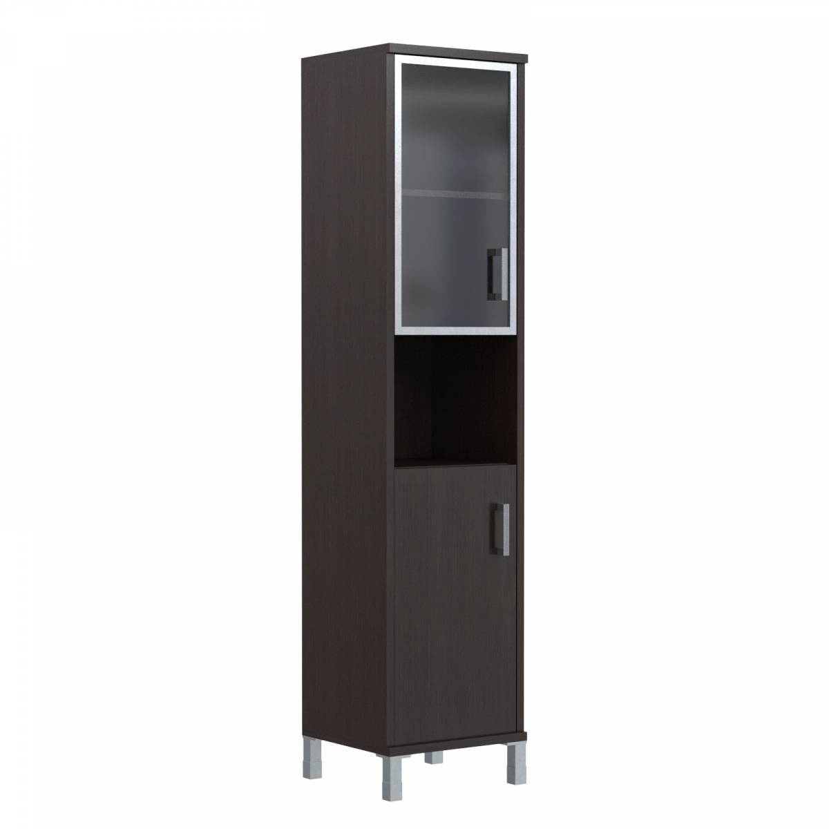 Шкаф-колонка средняя со стеклянной дверью в AL-рамке B 421.7(L) Венге Магия 475х450х1286