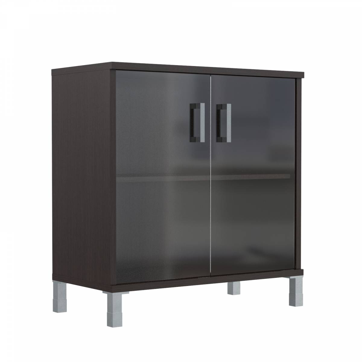 Шкаф низкий со стеклянными дверьми в AL-рамке B 410.4 Венге Магия 900х450х920