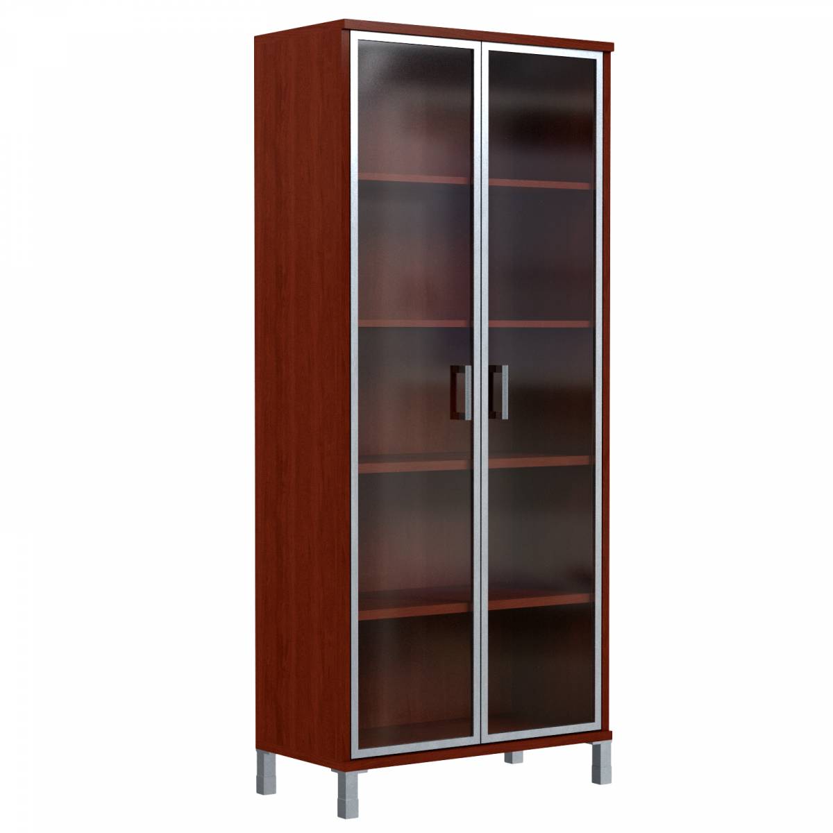 Шкаф высокий со стеклянными дверьми в AL-рамке B 430.8 Бургунди 900х450х2054