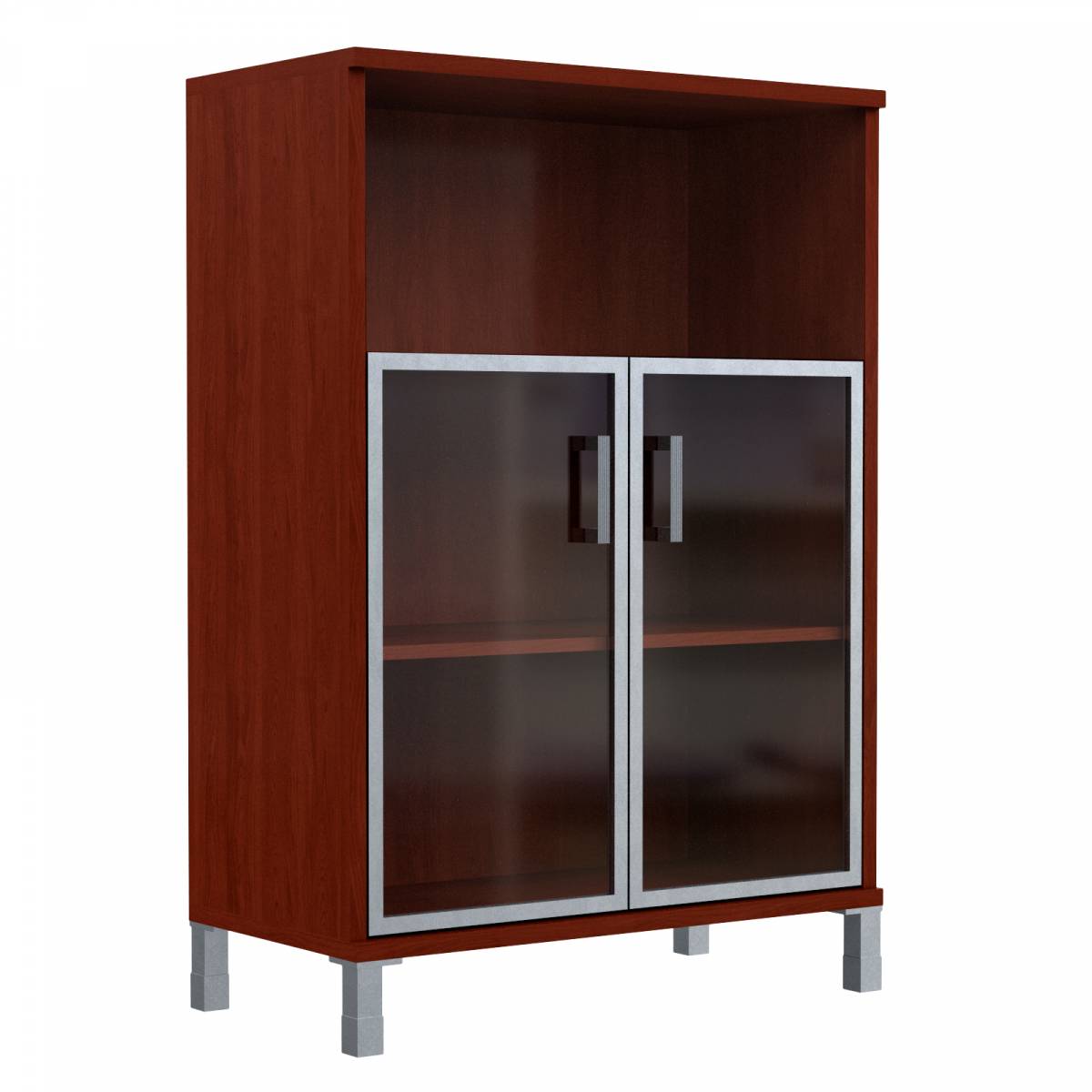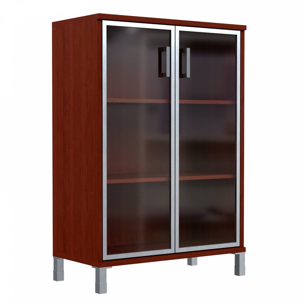 Шкаф средний с малыми стеклянными дверьми в AL-рамке B 420.4 Бургунди 900х450х1286